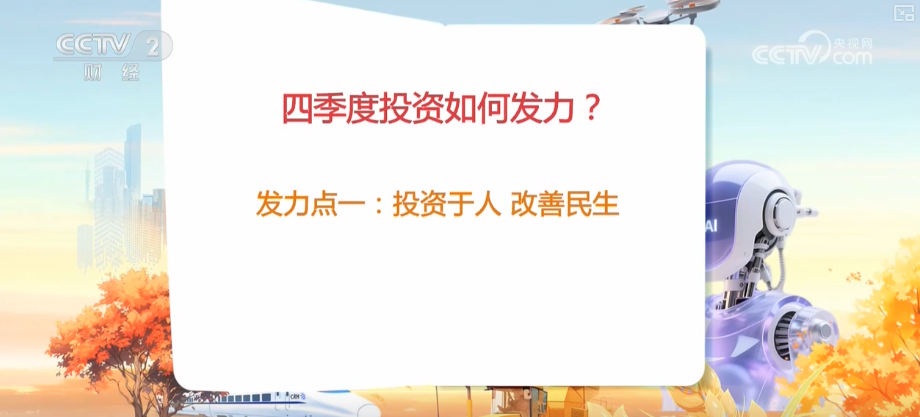 國(guó)家信息中心經(jīng)濟(jì)預(yù)測(cè)部產(chǎn)業(yè)經(jīng)濟(jì)研究室主任魏琪嘉介紹,四季度整個(gè)投資的重點(diǎn)領(lǐng)域,很多集中于民生項(xiàng)目建設(shè)方面,包括城市更新改造,地下管廊改造,包括停車場(chǎng)建設(shè)以及高標(biāo)準(zhǔn)農(nóng)田等,這些事關(guān)民生的一些重點(diǎn)的領(lǐng)域,實(shí)現(xiàn)這種投資于物與投資于人的這種高效協(xié)同,更多的投資于人。