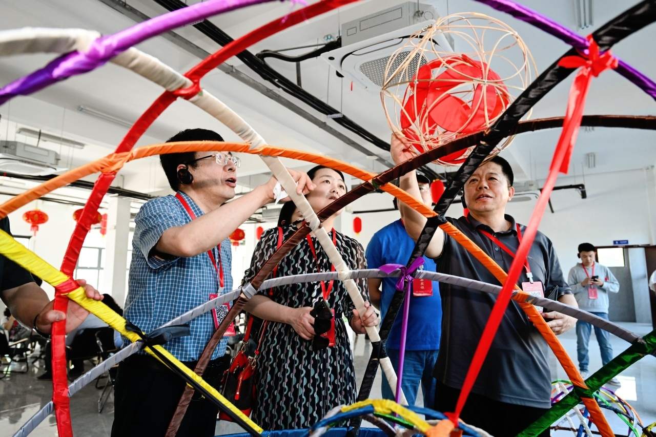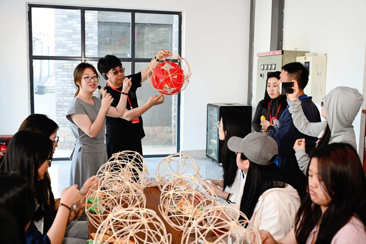 在“滾燈”文化公園,記者團親身感受了一把“潮鄉(xiāng)”的“滾燈”藝術(shù)的魅力?!皾L燈”源自江南一帶的民間節(jié)日慶典,融合了舞蹈、技巧與體育精髓,愛好者展示給記者們的金港村“滾燈”,其制作工藝之考究讓大伙都嘖嘖贊嘆。
