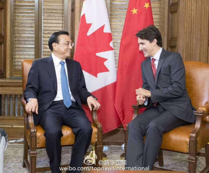 新華網(wǎng)北京9月23日電 當?shù)貢r間22日,李克強總理與加拿大總理特魯多舉行會談,確認正式啟動中加總理年度對話機制。會談中,兩國總理就中加關(guān)系和共同關(guān)心的地區(qū)國際問題進行了廣泛深入的交談。這是李克強和特魯多在不到一個月時間里第二次會晤。特魯多本月初剛剛訪華。(據(jù)新華社“新華國際”微博報道)