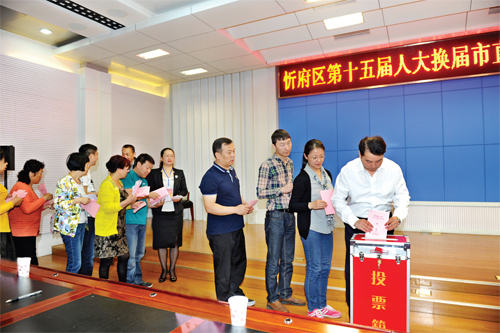 李俊明在黨群口市委辦公廳選區(qū)投票。上午9時,在黨群口市委辦公廳選區(qū),工作人員首先清點到會人數(shù)、核驗選民身份并分發(fā)選票,主持人宣讀了選舉程序,選民舉手表決通過了選舉辦法、總監(jiān)票人、監(jiān)票人、計票人等選舉工作人員名單??偙O(jiān)票人、監(jiān)票人現(xiàn)場查驗票箱后,選民認真填寫選票,然后依次有序走到票箱前為自己信任的候選人鄭重投下選票。市直黨群口市委辦公廳選區(qū)實際到會投票人數(shù)85人,因公外出人員依照法律規(guī)定程序委托他人代為投票。選舉現(xiàn)場氣氛莊嚴、秩序井然,許多老同志也踴躍參加投票。投票結(jié)束后,總監(jiān)票人、監(jiān)票人現(xiàn)場加封票箱。當日忻府區(qū)122個選區(qū)同步進行區(qū)人大代表選舉投票。