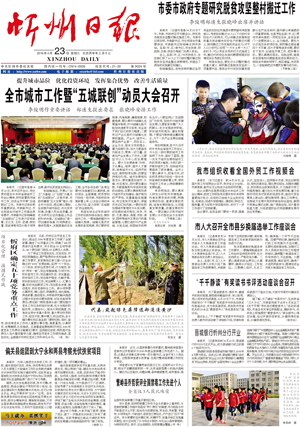 4月22日,忻州市召開會(huì)議,動(dòng)員全市開展“五城聯(lián)創(chuàng)”工作。提出了要以建設(shè)宜居忻州、造福人民群眾為目的、以“創(chuàng)衛(wèi)”為基礎(chǔ)、以“創(chuàng)園”為重點(diǎn)的創(chuàng)建國家衛(wèi)生城市、省級(jí)園林城市、國家環(huán)保模范城市、省級(jí)智慧城市、省級(jí)文明城市。同時(shí)宣布成立了“五城聯(lián)創(chuàng)”總指揮部,全面推進(jìn)了“五城聯(lián)創(chuàng)”工作。9月2日和12月9日,我市相繼召開忻州城區(qū)創(chuàng)建國家衛(wèi)生城市大會(huì)和再動(dòng)員大會(huì),對(duì)創(chuàng)衛(wèi)工作再部署、任務(wù)再明確,進(jìn)一步動(dòng)員市、區(qū)各級(jí)各部門提高認(rèn)識(shí),明確責(zé)任,強(qiáng)化措施,狠抓落實(shí),確保城區(qū)順利創(chuàng)建國家衛(wèi)生城市。目前中心城區(qū)創(chuàng)建國家衛(wèi)生城市通過專家暗訪,14個(gè)縣(市、區(qū))實(shí)現(xiàn)創(chuàng)衛(wèi)全覆蓋,全省唯一。中心城區(qū)和原平、五臺(tái)、寧武、岢嵐創(chuàng)建省級(jí)園林城市通過省考核驗(yàn)收,數(shù)量全省第一。加強(qiáng)大氣污染防治,全年二級(jí)以上天氣同比增加9天,是全省完成年度目標(biāo)任務(wù)的3個(gè)市之一。(2016年4月23日《忻州日?qǐng)?bào)》)