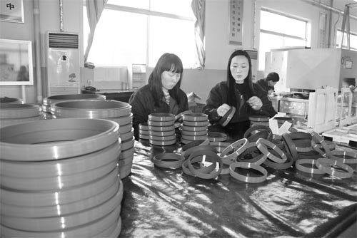圖為1月21日,原平市泰寶密封有限公司的工人們正在生產(chǎn)加工密封件。該企業(yè)擁有國際先進水平的奧地利無模密封件生產(chǎn)線,年生產(chǎn)能力達1200萬件。產(chǎn)品行銷東南亞各國和全國二十多個省市,廣泛應(yīng)用于煤炭、石油、冶金、機械、化工、電力、交通運輸?shù)刃袠I(yè)。(褚震 攝)