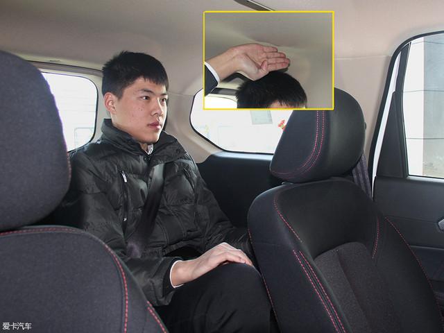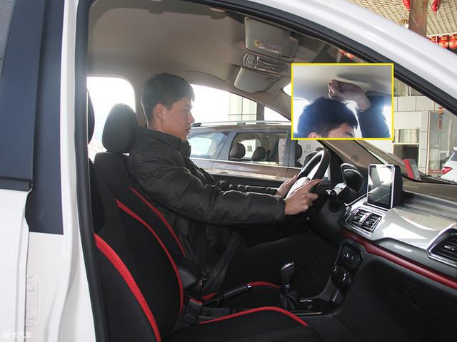 模特身高183cm,坐進駕駛位,將座椅位置調(diào)至最低,頭部還有一拳左右的余量。