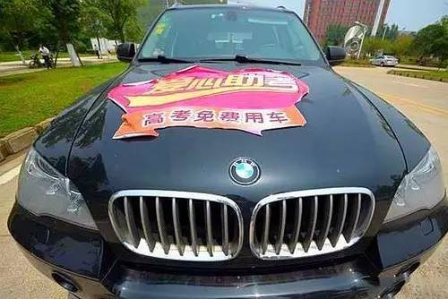瑪莎拉蒂、路虎、奔馳、寶馬……等十輛豪車在路邊一字排開,每輛車的發(fā)動(dòng)機(jī)蓋上都貼著“高考免費(fèi)用車”的標(biāo)語,盡管低調(diào)但車隊(duì)還是吸引了眾人的目光。