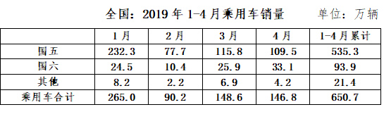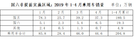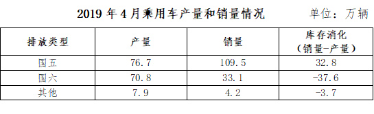 中汽協(xié)發(fā)布的數(shù)據(jù)顯示, 截至2019年4月份,我國乘用車庫銷比達3.1,遠高于行業(yè)1.5的警戒線;行業(yè)整體庫存約450萬輛,國五車輛庫存320萬輛左右(占行業(yè)庫存的71%),其中國六提前實施區(qū)域的國五車輛庫存175-220萬輛(調(diào)研企業(yè)推算得出)。