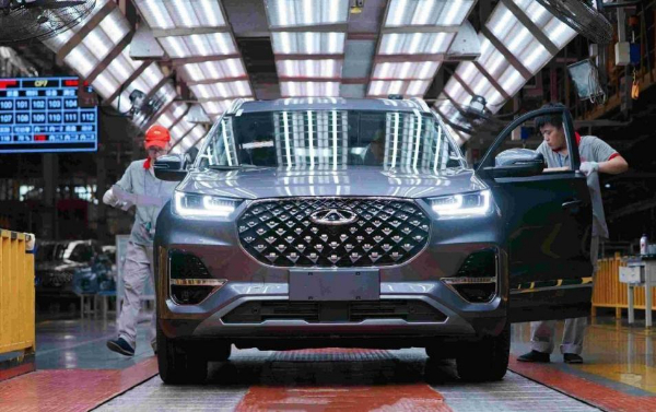 圖為正在緊張生產(chǎn)的奇瑞生產(chǎn)線