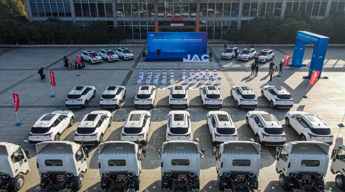 江淮汽車出口挪威500臺e-JS4暨法國西班牙100臺電動輕卡發(fā)車儀式