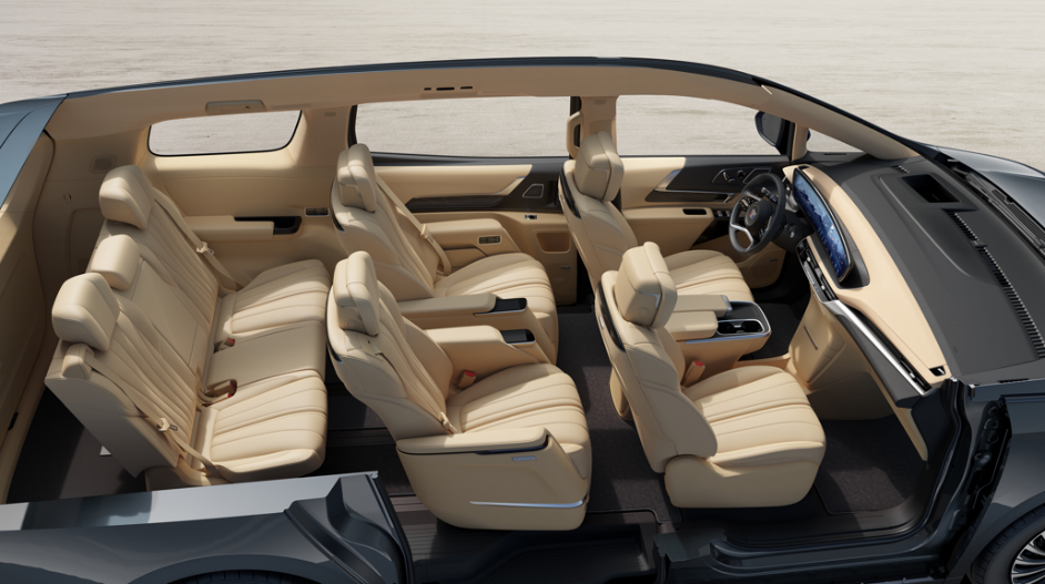 值得一提的是,七座臻享款第二排憑借電動橫滑設(shè)計,讓兩個座椅可以獨立橫向移動,既能靠攏后讓乘客交流親密無間,也可向兩側(cè)分開形成190mm中央寬敞通道,讓進出第三排更為便捷。根據(jù)用戶高頻出行場景,七座臻享款提供7項一鍵奢享座椅聯(lián)動模式,包括三排便捷上/下車、后備箱延伸、休憩、舒適、近享、入眠模式,通過前排中控屏、頂襯旋鈕或二排扶手屏控制,讓用車生活更愜意舒心。新車后備箱標準容積為604升,能輕松放置4個28吋行李箱;當?shù)谌抛巫畲蠡耙?,則可形成縱深1112mm、容積1901升的超大空間,適配更多用車場景需求。