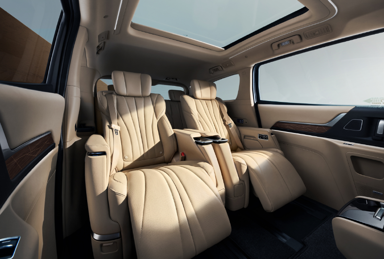 別克世紀CENTURY七座臻享款采用“2+2+3”座椅布局,搭載創(chuàng)新的二三排共用縱向電動長滑軌設(shè)計,可以讓二/三排座椅分別實現(xiàn)超長行程的電動前后移動。其第二排配備高級打孔真皮航空座椅,支持14向全電動調(diào)節(jié)、椅背最大可調(diào)節(jié)至171度、3檔加熱/通風/位置記憶、10點式按摩功能,并囊括一體展開式電動腿托和電動無級調(diào)節(jié)腳踏、翻折小桌板、無線充電手機槽,內(nèi)側(cè)扶手集成的滑動式6吋智能觸控屏還可對座椅、車窗、后排天窗遮陽簾、空調(diào)進行控制。第三排劇院式座椅寬綽舒適,可供3位成年人從容乘坐,下翻式中央扶手可4/6分單獨調(diào)節(jié)、椅背最大傾斜角度達132度、且座墊支持電動翻折。當座墊折起時,第三排可進行前后720mm超長行程電動滑動,實現(xiàn)靈活高效的空間利用。