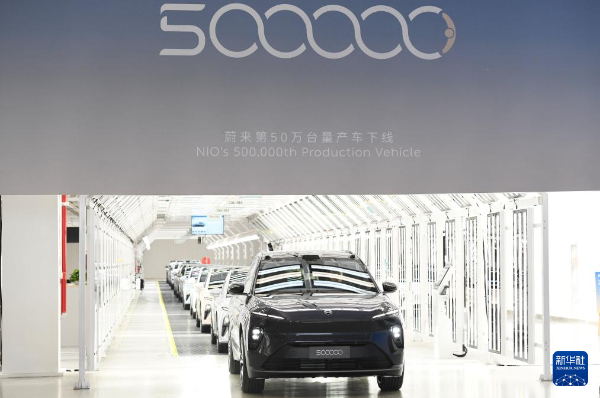 5月9日,在安徽省合肥市新橋智能電動(dòng)汽車產(chǎn)業(yè)園蔚來第二工廠,蔚來第50萬(wàn)臺(tái)量產(chǎn)車下線。新華社記者張端攝