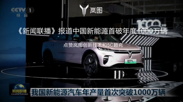這是兩個(gè)月內(nèi),嵐圖汽車(chē)第二次出現(xiàn)在央視節(jié)目中。此前,11月14日,2024年中國(guó)新能源汽車(chē)1000萬(wàn)輛達(dá)成活動(dòng)在嵐圖汽車(chē)云峰工廠盛大舉行,嵐圖知音作為1000萬(wàn)輛中國(guó)新能源汽車(chē)下線的代表車(chē)型,分別被《朝聞天下》《新聞30分》《新聞聯(lián)播》等節(jié)目報(bào)道。