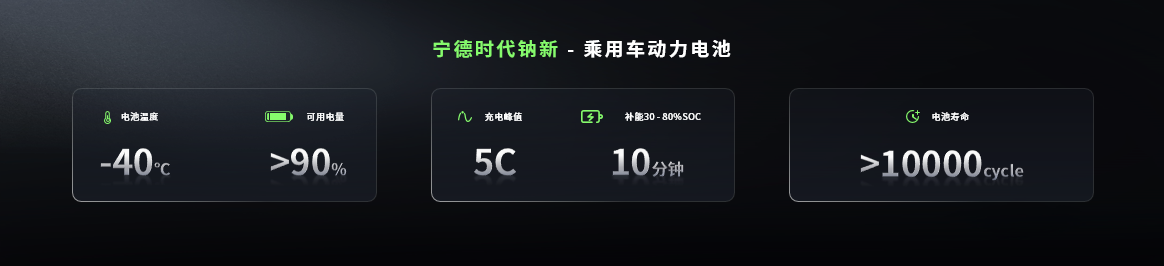鈉新乘用車(chē)動(dòng)力電池的能量密度達(dá)175Wh/kg,為當(dāng)前全球鈉電最高,比肩磷酸鐵鋰電池;支持峰值5C的充電速率和500公里續(xù)航,實(shí)現(xiàn)超1萬(wàn)個(gè)循環(huán)的壽命,同時(shí)大幅降低維護(hù)成本。在安全性上,鈉新電池從材料本征層面消除電池?zé)崾Э刂械闹家蛩?,?shí)現(xiàn)電池安全從"被動(dòng)防御"到"本質(zhì)安全"的跨越式突破。