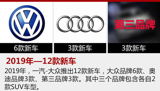 2017年進(jìn)入下半年,一汽-大眾就開始籌劃2025戰(zhàn)略,以完成更高的銷量目標(biāo)和更長遠(yuǎn)的發(fā)展。同時(shí),官方還表示將在兩年內(nèi)推出23款新車,并包含大眾、奧迪以及第三品牌。此前,一汽-大眾汽車有限公司企業(yè)品牌資訊發(fā)言人、公關(guān)總監(jiān)黃龍向網(wǎng)通社表示:“在未來的車型投放方面, 2018年共有11款新品投放,其中大眾品牌7款,奧迪品牌4款。”
