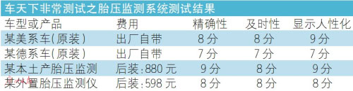 從此次測試來看,幾款胎壓監(jiān)測裝置都沒有“當機”的,只要胎壓出現(xiàn)問題都能精確地監(jiān)測到。大部分內置胎壓監(jiān)測產品的反應時間在3秒左右,個別情況下會有4、5秒的情況,均在可接受范圍內。在“放氣”測試中,車天下君留意到,這種清晰且功能強大的胎壓監(jiān)測顯示功能實現(xiàn)起來并不難,也成為當前新車車型的必備。
