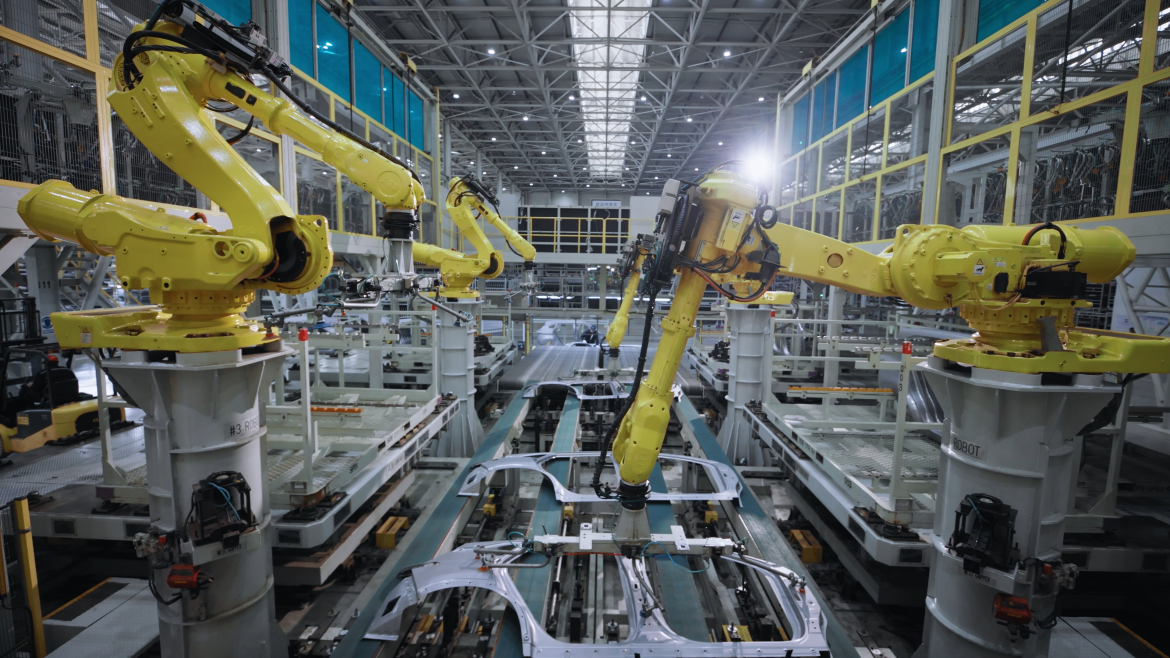 焊裝車(chē)間采用全自動(dòng)化生產(chǎn)線(xiàn)與柔性生產(chǎn)方式,配備智能焊接系統(tǒng)、涂膠影像系統(tǒng)及MES系統(tǒng)。通過(guò)實(shí)時(shí)監(jiān)測(cè)焊接數(shù)據(jù)與指標(biāo),及時(shí)發(fā)現(xiàn)并解決潛在品質(zhì)問(wèn)題,保障焊接品質(zhì)與效率。
