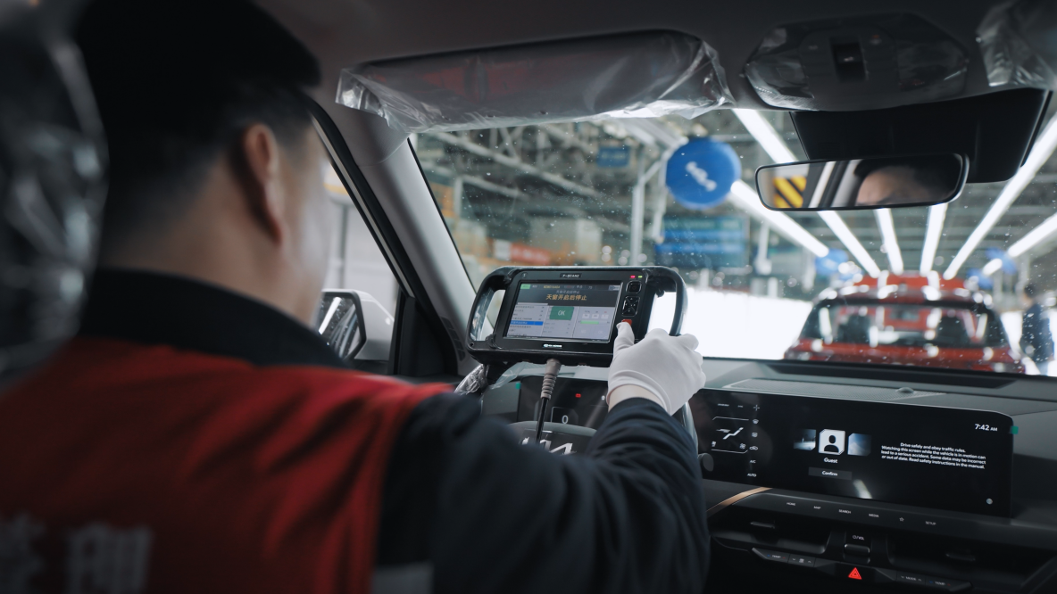總裝車(chē)間作為汽車(chē)生產(chǎn)最后一道關(guān)卡,采用柔性生產(chǎn)線(xiàn)與數(shù)字化生產(chǎn)系統(tǒng),配備ONEKIT物流系統(tǒng)、緊固履歷系統(tǒng)及工業(yè)視覺(jué)技術(shù)。實(shí)時(shí)監(jiān)測(cè)總裝數(shù)據(jù)與指標(biāo),確保每輛下線(xiàn)汽車(chē)符合全球統(tǒng)一生產(chǎn)標(biāo)準(zhǔn),保障總裝品質(zhì)與效率。