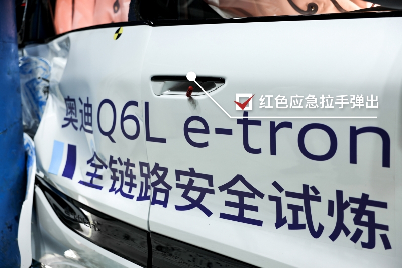 右側(cè)柱碰位置被侵入量較小,乘員艙擁有足夠的生存空間 結(jié)果顯示,一汽奧迪Q6L e-tron車身結(jié)構(gòu)完整,A、B、C、D柱均未發(fā)生結(jié)構(gòu)性失效,兩次擠壓下乘員艙依然保持足夠的生存空間。安全帶正常預(yù)緊點(diǎn)爆,側(cè)氣囊、側(cè)氣簾及中央氣囊正常展開,全車假人傷害值均處于優(yōu)秀水平。電池組在遭遇“夾心式?jīng)_擊”后幾乎無變形、無位移,經(jīng)受住幾何形變與短路風(fēng)險雙重考驗(yàn),未發(fā)生冒煙、起火、爆炸或電解液泄漏。高壓系統(tǒng)在毫秒級內(nèi)完成高壓斷電,有效避免短路造成熱失控風(fēng)險。通過科學(xué)的走線,有效的結(jié)構(gòu)保護(hù),以及冗余的功能設(shè)計(jì),保障極限場景下低壓電正常工作。半隱藏式車門把手的紅色應(yīng)急拉手正常彈出,前排車門可正常打開,電動座椅可調(diào)節(jié);車窗自動下降,保障車內(nèi)空氣流動。碰撞后雙閃及時開啟,E-CALL及時啟動并接通人工客服。從堅(jiān)若磐石的乘員艙結(jié)構(gòu),到周全可靠的碰撞后救援機(jī)制等,每一個安全細(xì)節(jié)都交出了高分答卷。