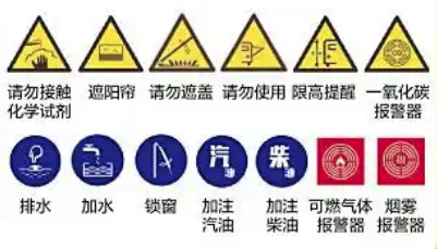 滅火器標(biāo)志必須貼在車門旁或廚房附近等滅火器存放處,要求標(biāo)志尺寸不小于10厘米見(jiàn)方,以確保在光線較暗的情況下也能快速找到;