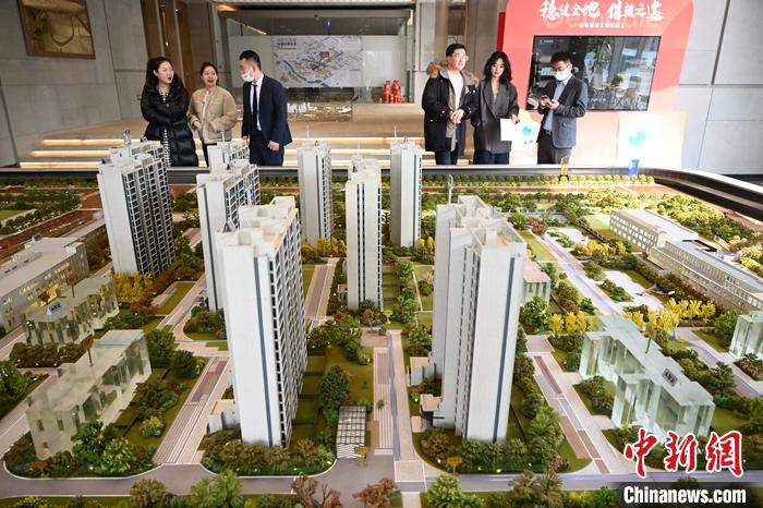 2月16日,內(nèi)蒙古呼和浩特市,購房者在售樓部關(guān)注樓盤信息。中新社記者 劉文華 攝
