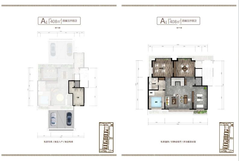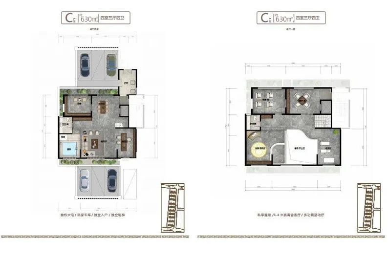 地下室設(shè)計(jì)不同于傳統(tǒng)地下室,只能為儲(chǔ)藏室使用,而小區(qū)地下室層高和地上建筑面積層高一致,達(dá)到了3.2米,沒(méi)有空間壓抑感,在南北庭院都設(shè)有1.2米的通風(fēng)采光井,室內(nèi)鋪設(shè)地暖及溫泉管道,上下水和衛(wèi)生間,私密性特強(qiáng),可以設(shè)計(jì)桑拿房,健身房,保姆間,洗衣房,酒窖及休閑娛樂(lè)等多功能區(qū)域,對(duì)于鄰居既不會(huì)產(chǎn)生噪音干擾,更不會(huì)打擾到家人的休息,在提高了生活品質(zhì)的同時(shí)也不會(huì)由空間局促感,地下室可以直通地下私家車(chē)庫(kù),車(chē)庫(kù)層高4.2米,寬約7-10米,至少可以容納家用汽車(chē)三輛。