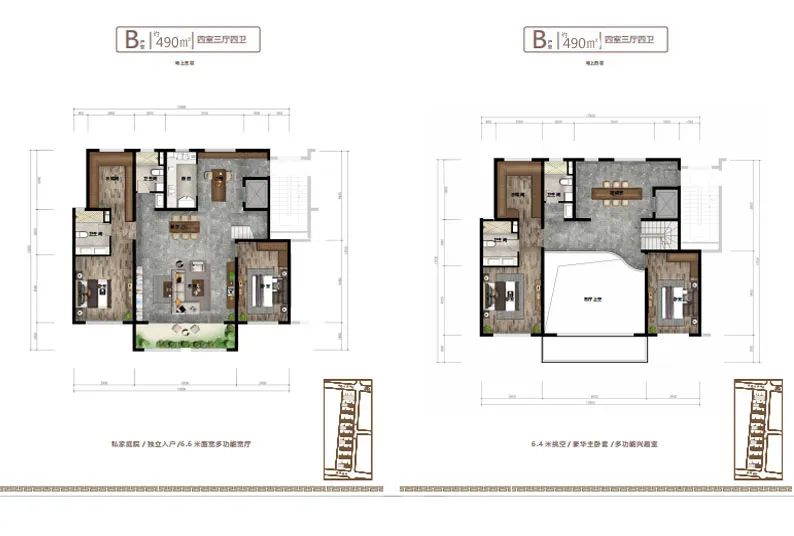 項(xiàng)目主打聯(lián)排疊墅戶(hù)型設(shè)計(jì),疊墅是低密度住宅,樓距寬,樓棟密度小,保持有一定的私密性,每戶(hù)擁有私家獨(dú)立庭院,及私家花園露臺(tái),庭院入戶(hù),室內(nèi)層高3.2米,每戶(hù)設(shè)有私家電梯可以直達(dá)室內(nèi)任一層及空中露臺(tái),地下室和私家車(chē)庫(kù)。客廳開(kāi)間6.6米,層高挑空6.4米的設(shè)計(jì)(挑空部分不計(jì)算面積),另外挑空部分可以根據(jù)業(yè)主需求,自行設(shè)計(jì),可以增加一個(gè)約40平米的起居室。