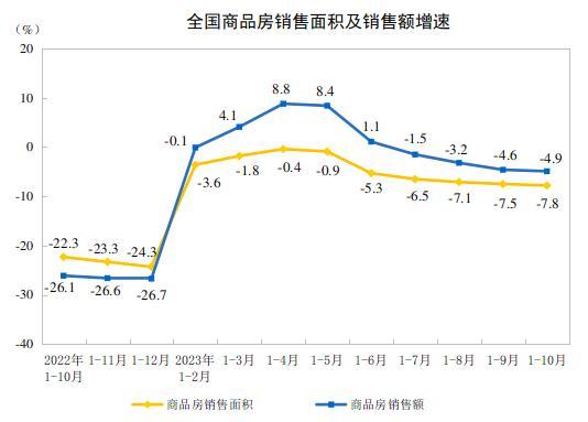 國家統(tǒng)計局:1—10月份商品房銷售面積同比下降7.8%