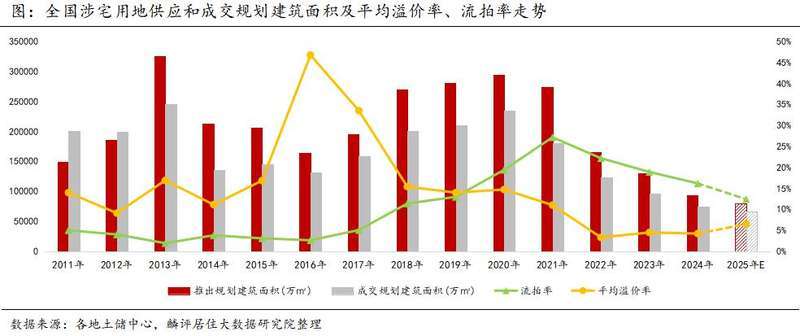 剛剛過去的2024年,全國土地市場供需兩端延續(xù)縮量態(tài)勢,溢價率低位徘徊,流拍率雖有下降但仍處于較高位。據(jù)機構統(tǒng)計,2024年全國住宅用地成交規(guī)模降幅超兩成,土地出讓金僅為2020年高點四成左右。聚焦高能級城市拿地投資,成為眾多房地產企業(yè)的共識。
