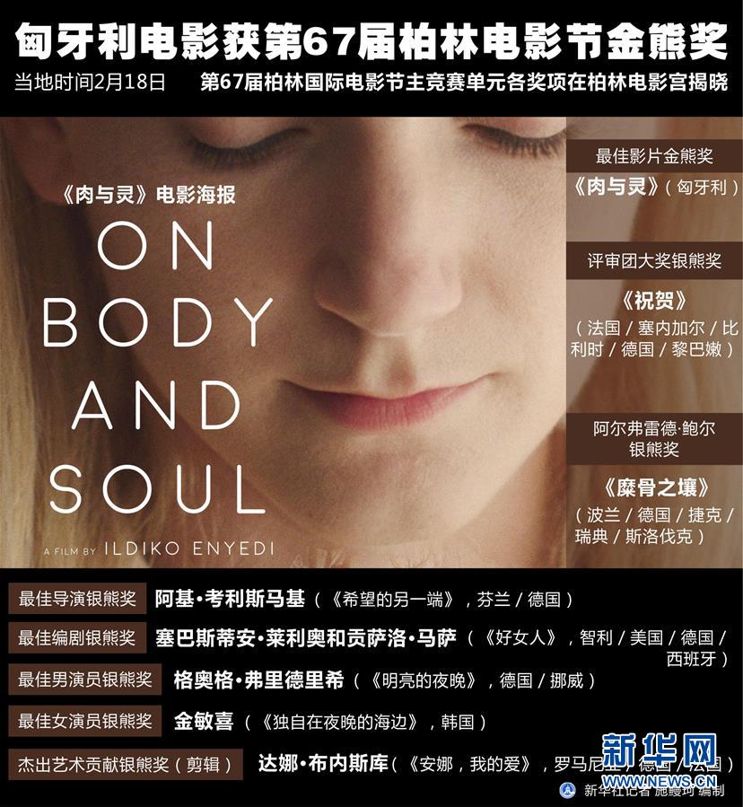 新華社柏林2月18日電(記者張毅榮)第67屆柏林國際電影節(jié)主競賽單元各獎項18日在柏林電影宮揭曉,匈牙利電影《肉與靈》獲最佳影片金熊獎。