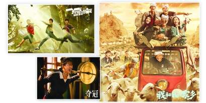 家鄉(xiāng)無疑是國慶檔最重要的票房催化劑,一個“鄉(xiāng)”字凝結(jié)了中國人的情感認(rèn)同。圖為《一點就到家》《奪冠》《我和我的家鄉(xiāng)》海報。 制圖:馮曉瑜
