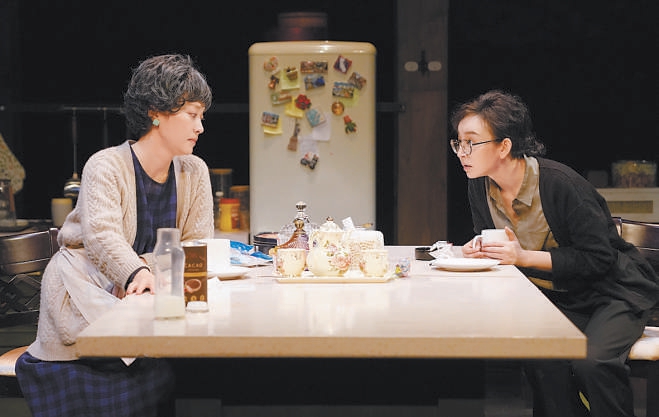 “《晚安,媽媽》沒有大的戲劇沖突,所有的矛盾都來自真實的生活,通過合情合理的人物關系和環(huán)環(huán)相扣的對話,去撥開日常生活之下翻滾的心?!碧茻钚稳荩@是一部沒有借助所謂的“手段”的作品,100分鐘的演出真誠動人,靠的是扎實的舞臺實景和兩位演員牽動肺腑的表演——冰箱里塞滿食物,杯子盛著冒白氣的熱巧克力,水龍頭能擰出自來水,沒有刻意的音樂和效果,整座舞臺如同真實生活的切面。演員需要在“做家務”的同時進行快節(jié)奏、高密度的對話,“手上不能停,但也不能攪戲,比如母女倆換沙發(fā)套的那一段,我們就練了很久很久?!碧茻钫f。