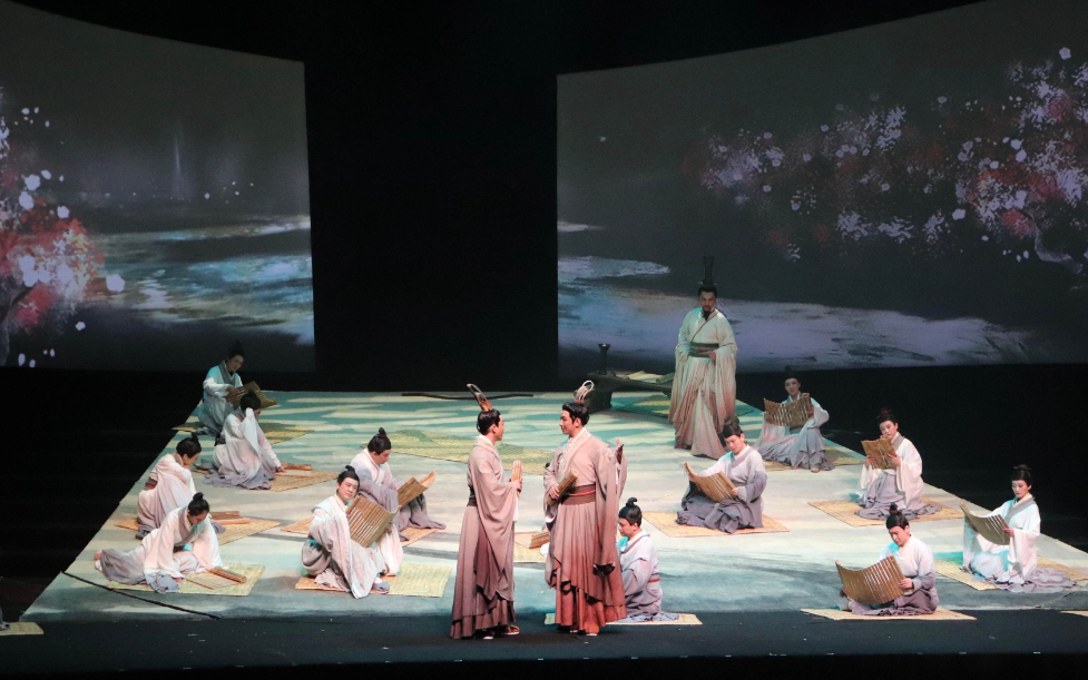 話劇《孔子》融合了音樂、舞蹈、詩歌、繪畫、戲曲、雕塑等藝術(shù)元素,以春秋末期諸侯爭霸為歷史背景,講述了孔子波瀾壯闊而又顛沛流離的一生,生動塑造了歷經(jīng)磨難而初心不改的古代思想家、政治家、教育家形象。