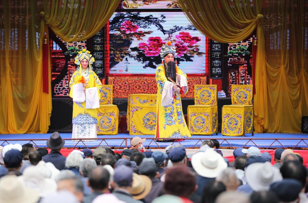 演員在甘肅省定西市體育公園演唱秦腔經(jīng)典傳統(tǒng)劇《打金枝》(9月19日攝)。新華社發(fā)(王克賢攝)