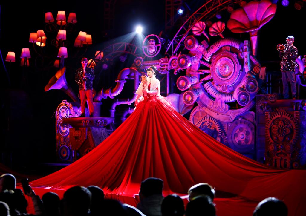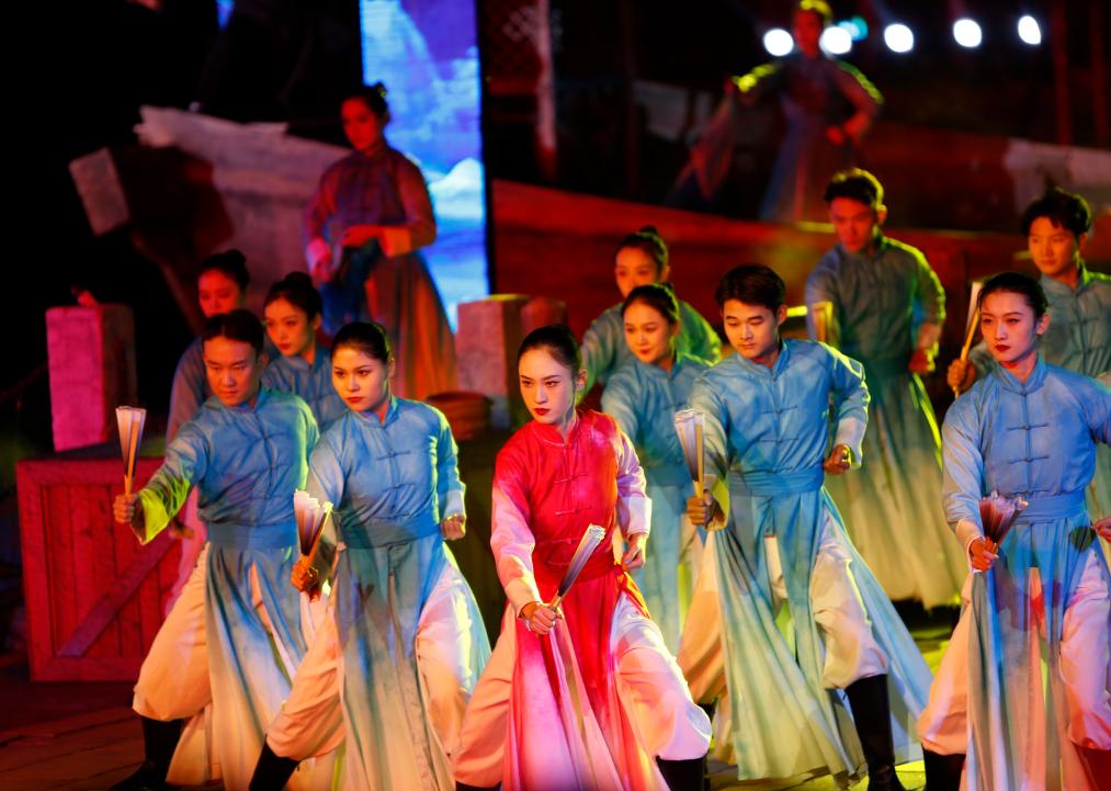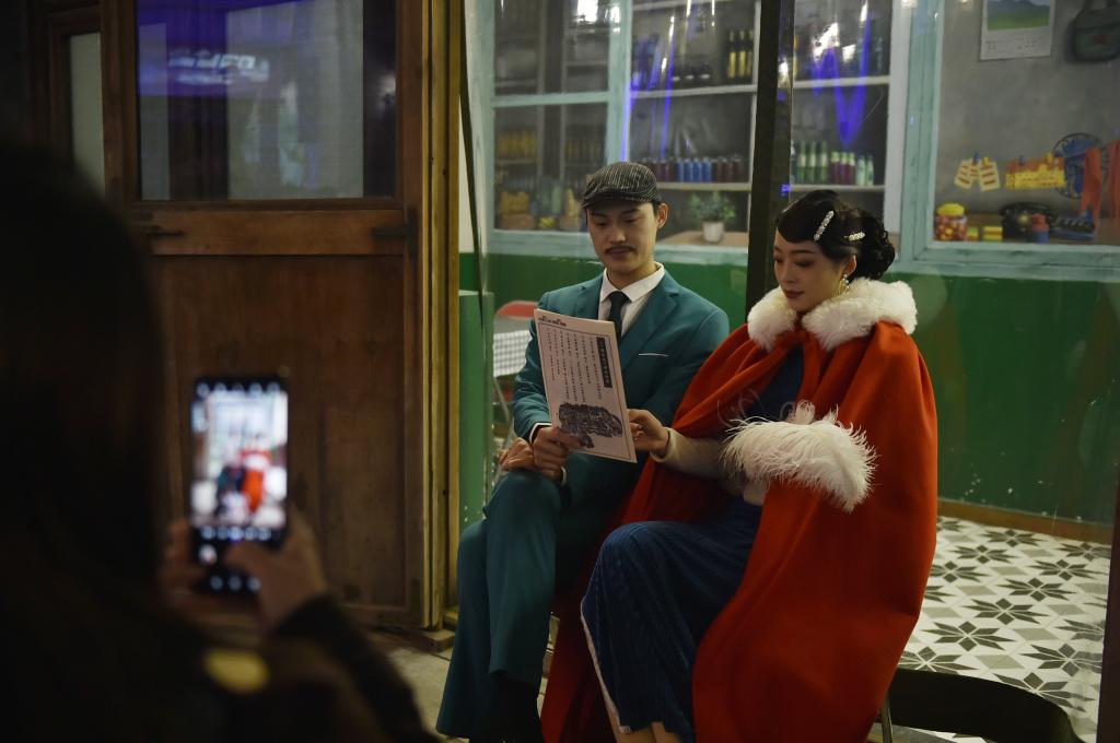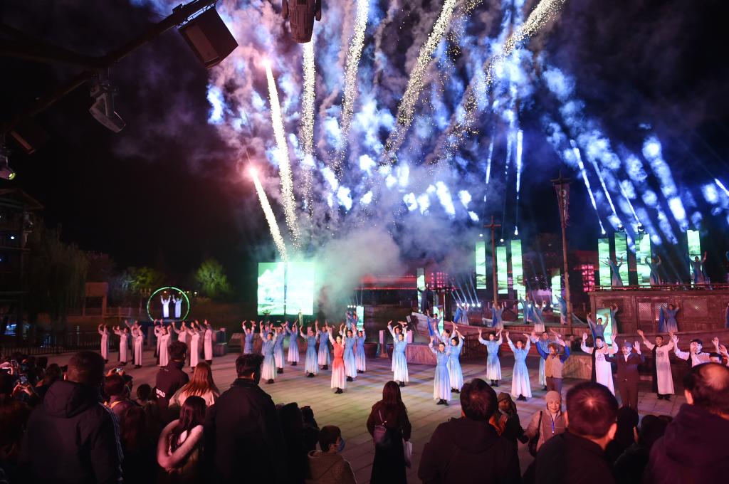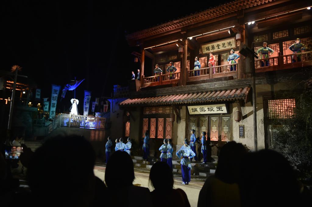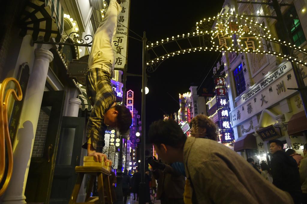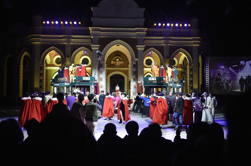 11月16日晚,演員在建業(yè)電影小鎮(zhèn)內(nèi)為觀眾表演。新華社記者 戴翹楚 攝