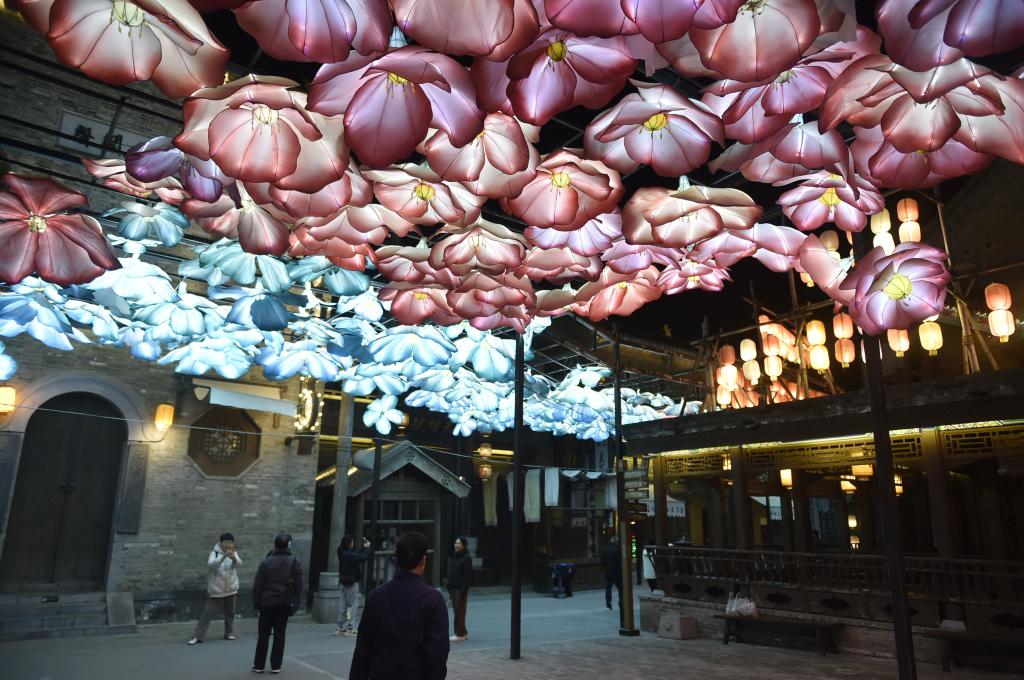 11月16日晚,游人在建業(yè)電影小鎮(zhèn)內(nèi)游覽拍照。新華社記者 戴翹楚 攝