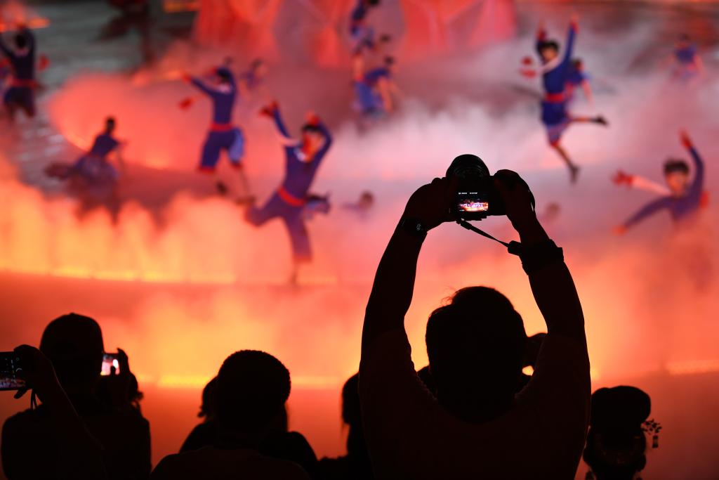 9月20日,游客在貴州省雷山縣大塘鎮(zhèn)觀看苗族歌舞詩劇《仰歐桑》。新華社發(fā)(陳孝新攝)