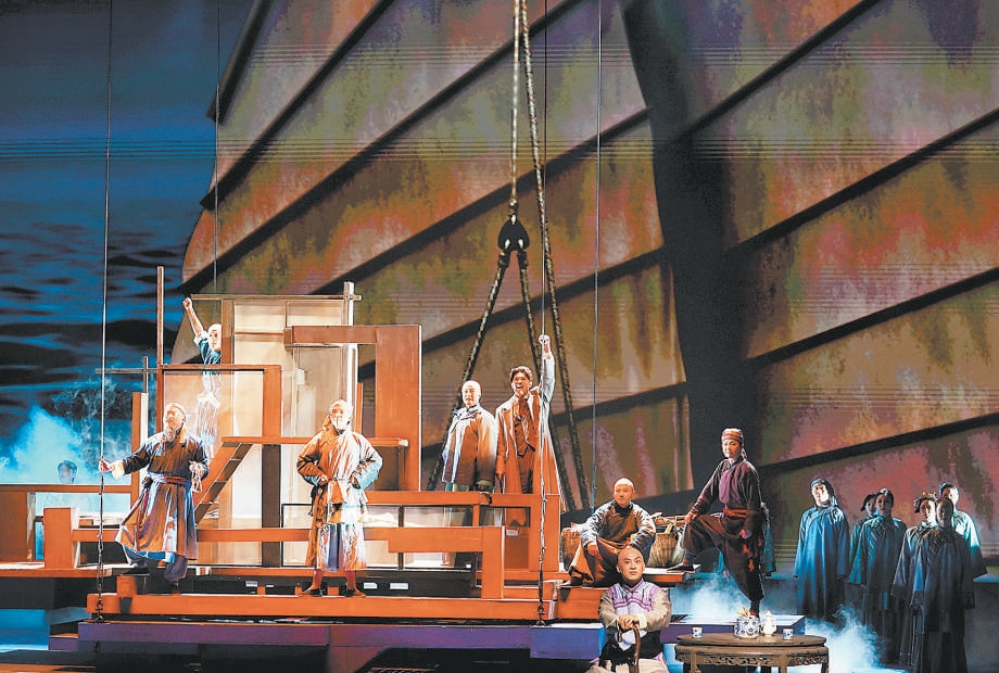 作為跨越時(shí)間、地理與文化的超大體量文化遺產(chǎn),京杭大運(yùn)河積淀了深厚豐富的文化內(nèi)涵,成為文藝創(chuàng)作取之不盡、用之不竭的創(chuàng)作源泉。但是將徐則臣30萬(wàn)字的小說(shuō)原著改編成舞臺(tái)劇,并不是一件容易的事。充滿難度和挑戰(zhàn)的,不僅是要將文學(xué)語(yǔ)言巧妙轉(zhuǎn)化為舞臺(tái)語(yǔ)言,讓小說(shuō)中充滿想象力的人物和情節(jié)鮮活生動(dòng)地出現(xiàn)在觀眾面前;更重要的是,如何在保留原著厚重文化精神和飽滿情感能量的基礎(chǔ)上,通過(guò)戲劇的力量延展出更強(qiáng)大的思想與情感張力,帶給當(dāng)代觀眾更深的思考與感動(dòng)。
