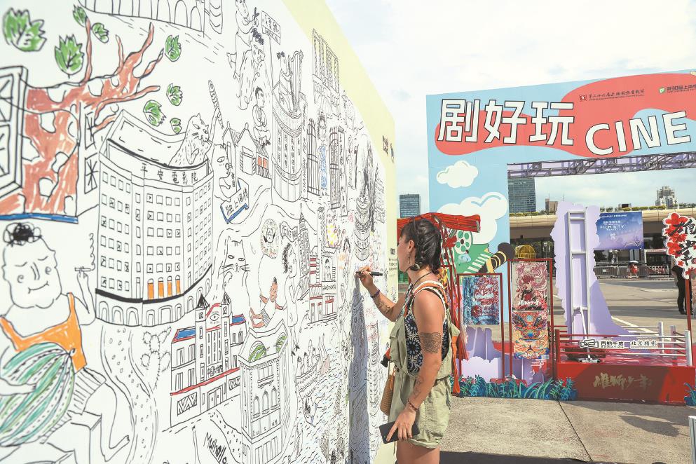 胡子拉碴的警員阿Sir、動畫電影《馴龍高手》中的無牙仔、充滿懸念的“醬園弄現(xiàn)場”……在上海展覽中心,立有一塊由插畫師Rosá玫瑰與市民共創(chuàng)的“我的電影故事”畫板,一筆筆手繪中埋下很多城市彩蛋與弄堂故事,更有影迷在空白插畫區(qū)記錄下自己的“私影史”。畫板右上角有一處方方正正的電影院簡筆畫,連進(jìn)場路線都用火柴人標(biāo)注清楚,Movieland小程序工作人員韓語指著這處手繪告訴記者:“一位影迷過來,說‘怎么能沒有我們滬北電影院呢?我也要畫一個’,他就趴在畫板畫了快半小時,昨天太陽那么大,背都曬紅了?!?/p>