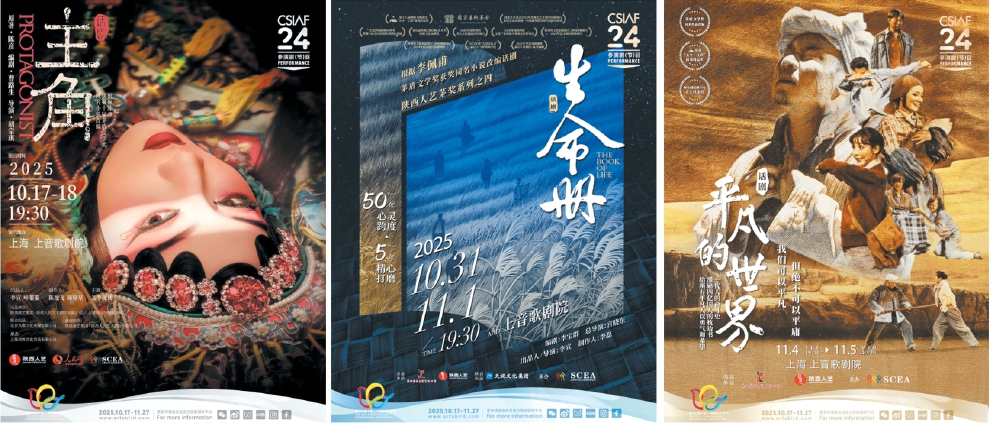“茅獎(jiǎng)系列”作品《主角》《生命冊(cè)》《平凡的世界》《白鹿原》以及“陳彥三部曲”《星空與半棵樹》五部大戲?qū)⒃谏弦舾鑴≡毫料唷D為部分演出海報(bào)。