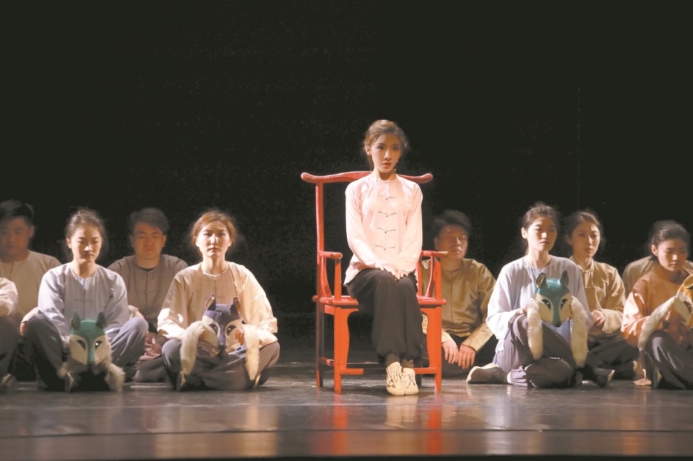 話劇《主角》中,青年演員劉李優(yōu)優(yōu)(左二)飾演秦腔名家憶秦娥。 (主辦方供圖)