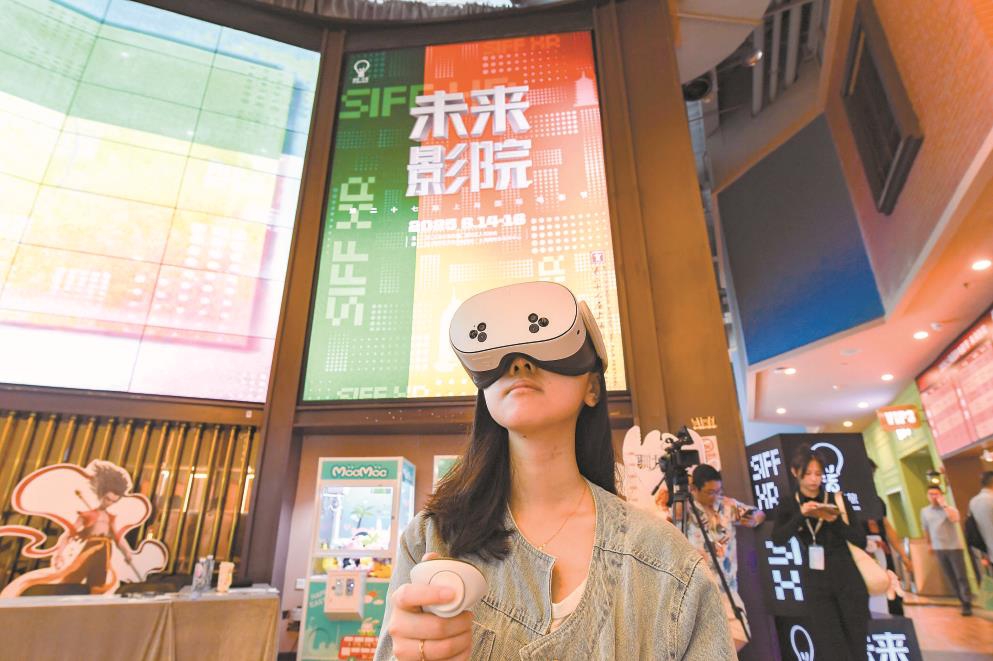 第二十七屆上海國(guó)際電影節(jié)未來(lái)影院?jiǎn)卧陂L(zhǎng)風(fēng)大悅城華誼兄弟電影中心正式啟動(dòng)。AR、VR、MR等技術(shù)讓觀眾品嘗未來(lái)影像的饕餮盛宴。文匯報(bào)記者 張伊辰攝