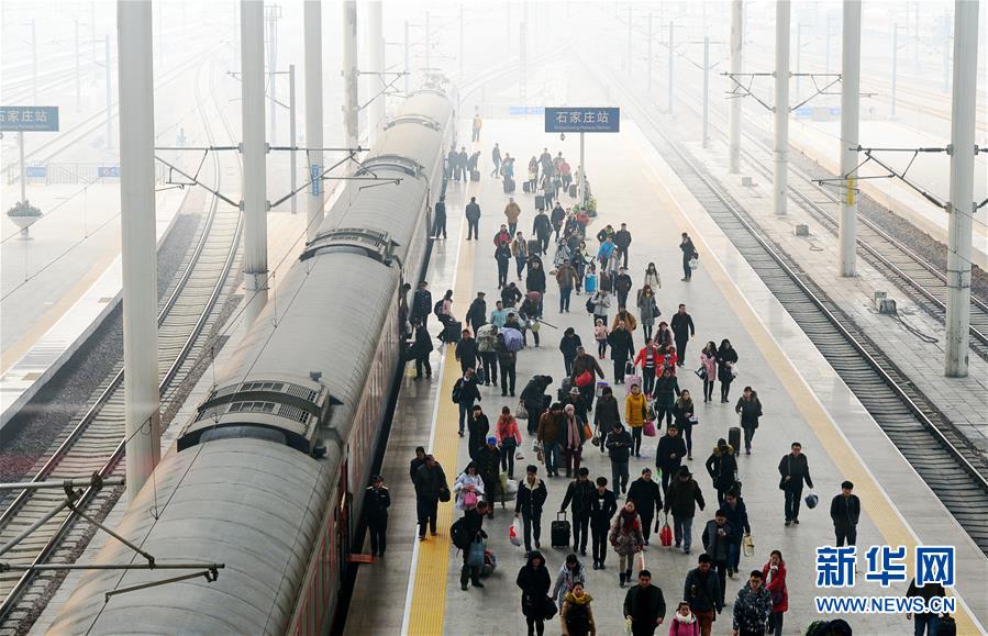 一輛動(dòng)車組列車駛離石家莊火車站(1月9日攝)。 1月10日零時(shí)起,全國鐵路實(shí)行新的列車運(yùn)行圖,增開旅客列車285.5對(duì),其中增開動(dòng)車組列車281.5對(duì)。運(yùn)行圖調(diào)整后,全國鐵路開行旅客列車總數(shù)達(dá)到3142對(duì),其中動(dòng)車組列車1980.5對(duì)。新華社記者 牟宇 攝