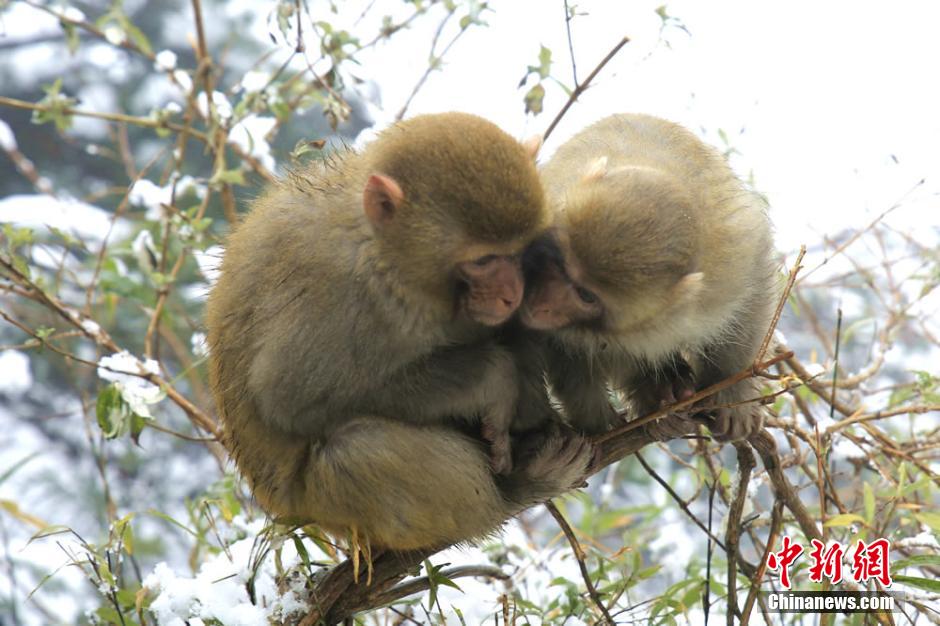2月22日正值元宵佳節(jié),湖南張家界核心景區(qū)武陵源喜降春雪。在黃石寨景區(qū),成群的野生獼猴或在雪中追逐戲鬧,或在樹枝上攀爬跳躍,或蜷縮著身子賣萌,成為張家界武陵源的一道春季新景。吳勇兵 攝