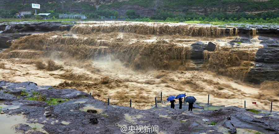 受上游強降雨和水庫放水影響,最近幾天,黃河壺口瀑布迎來伏汛,最大水流量達到每秒2600立方米左右,濁流滾滾奔騰而下,氣勢磅礴?。ㄑ胍曈浾呃钪?文豪)