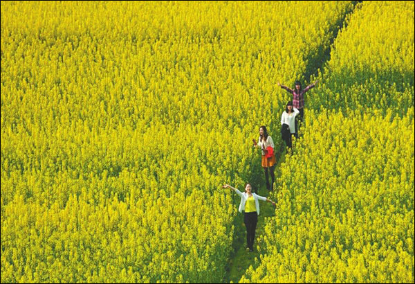 重慶路,這條“最美鄉(xiāng)村公路”也提前報春。道路兩側(cè)的金色油菜花海,惹得眾人置身其中,一邊拍照一邊追逐打鬧。此外,附近還隱藏有一處“桃花源”,也十分值得探尋。