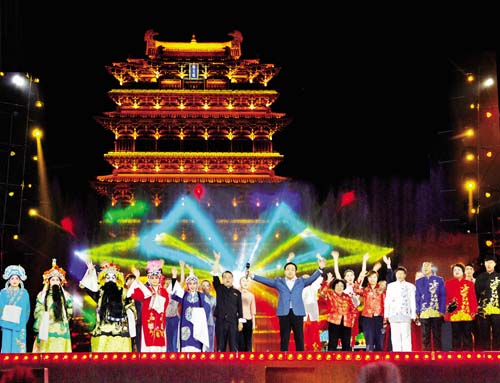 作為主場的運城市,用絳州鼓樂這一傳承千年的世界級非物質(zhì)文化遺產(chǎn)開場,電視連續(xù)劇《三國演義》關(guān)公扮演者陸樹銘威嚴亮相,以關(guān)公形象表達運城歷史傳統(tǒng)文化。