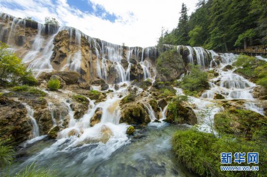 九寨溝風景名勝區(qū)內的“珍珠灘瀑布”(6月18日攝)。新華社記者 沈伯韓 攝