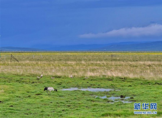 近年來,當?shù)貙嵤┗ê竦厣鷳B(tài)修復試點工程,為野生動物棲息營造了良好的生態(tài)環(huán)境。瀕危物種黑頸鶴數(shù)量持續(xù)穩(wěn)定上升,1999年發(fā)現(xiàn)黑頸鶴407只,2019年其數(shù)量估計約為1000只左右。