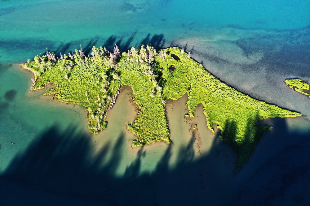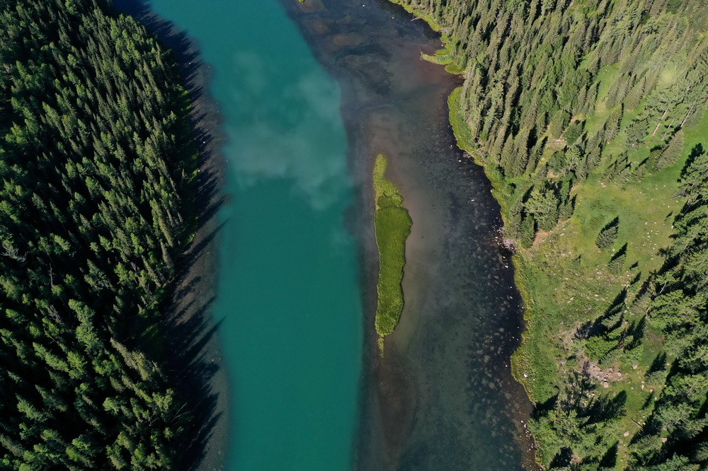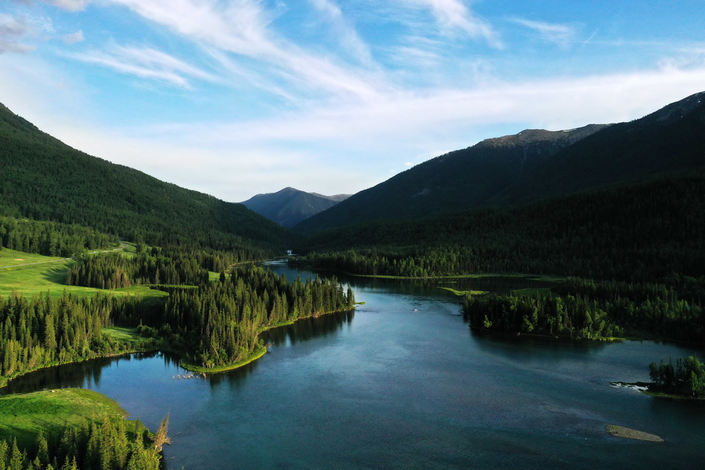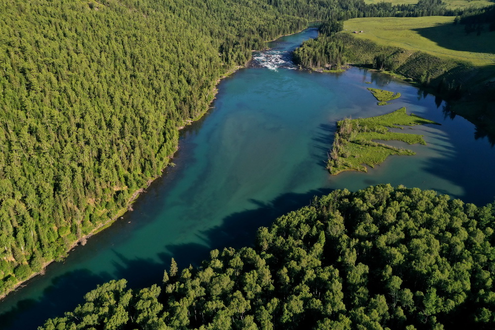 這是6月25日拍攝的新疆喀納斯景區(qū)風(fēng)光(無(wú)人機(jī)照片)。新華社記者 沙達(dá)提 攝