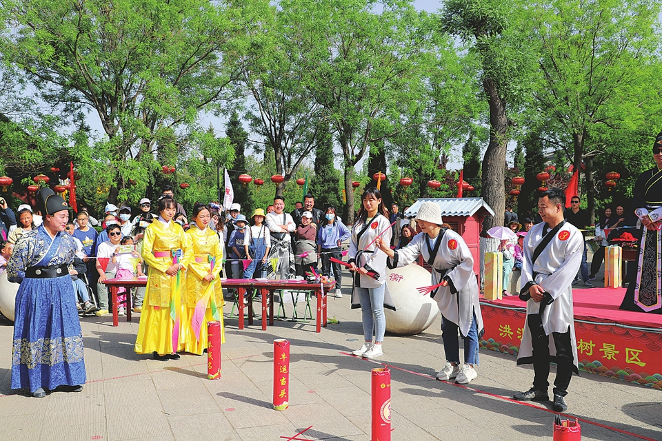 洪洞大槐樹景區(qū)推出的“中秋合家歡 全家總動員”活動,吸引了不少游客踴躍參與。 本報首席記者栗美霞攝