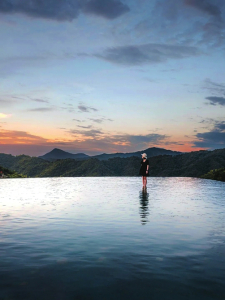 白天,游人可以搭乘索道登上葛仙山,行在山中,可見清泉瑩然,苔蘚盈階、云海翻騰,可聽泉水響動(dòng),天色如夢(mèng)變幻。葛仙山的翠竹、樹木極多,是一道天然的屏障,趕在落日之前,快步來(lái)到葛仙村無(wú)邊泳池,赴一場(chǎng)“橘色云朵+藍(lán)色池水”的浪漫。